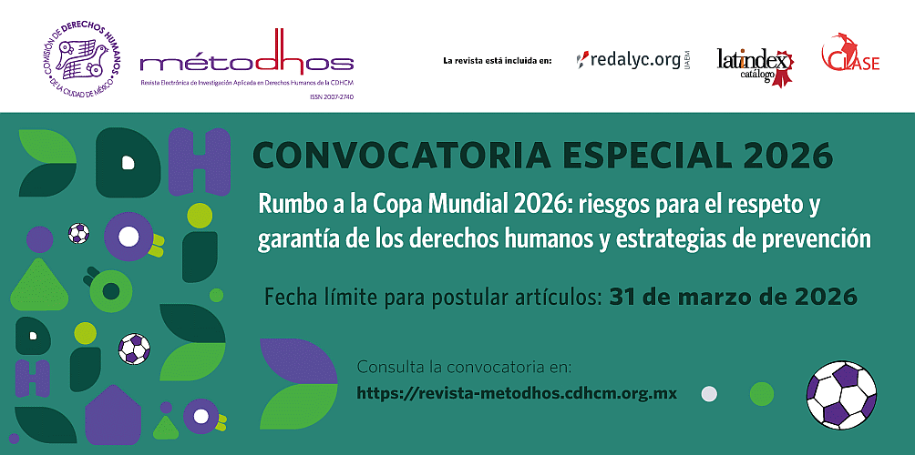métodhos, es una revista científica especializada en derechos humanos, editada por la Comisión de Derechos Humanos de la Ciudad de México. Se publica semestralmente y busca impulsar la investigación a partir de elementos teóricos y empíricos de carácter multidisciplinario, con los objetivos específicos de promover el estudio de los derechos humanos, dar a conocer la situación que guardan a nivel local, nacional e internacional, así como ser una herramienta útil de investigación y un referente en los estudios sobre la materia. Está dirigida a la comunidad académica, instituciones, organizaciones y cualquier persona interesada en los derechos humanos.